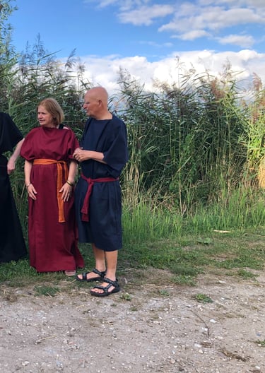 In augustus maakten deelnemers vier nieuwe Romeinse tunica's.