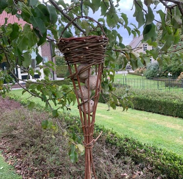 Met de wilgentenen van de Hortus Populus maken we een uitnodigende hanger voor vetbollen.